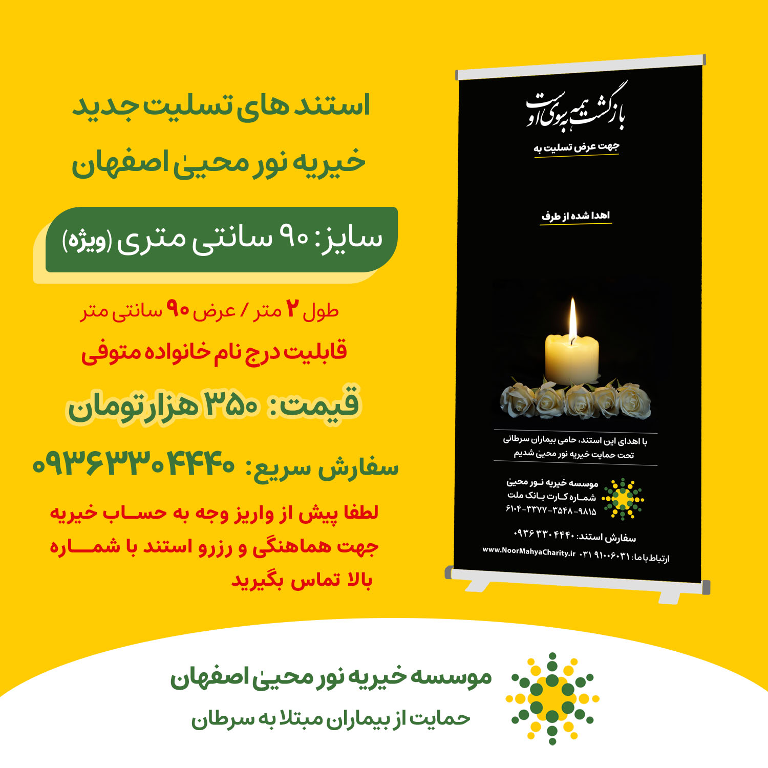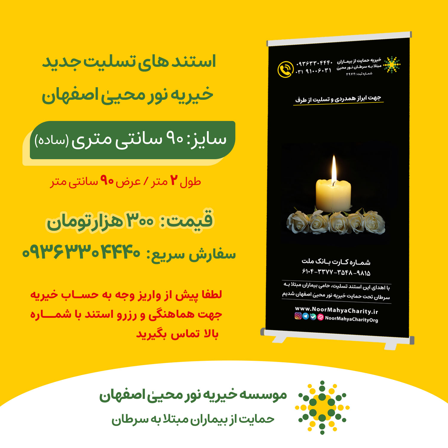 | ابعاد استند تسلیت | 2 متر * 120 سانتی متر |